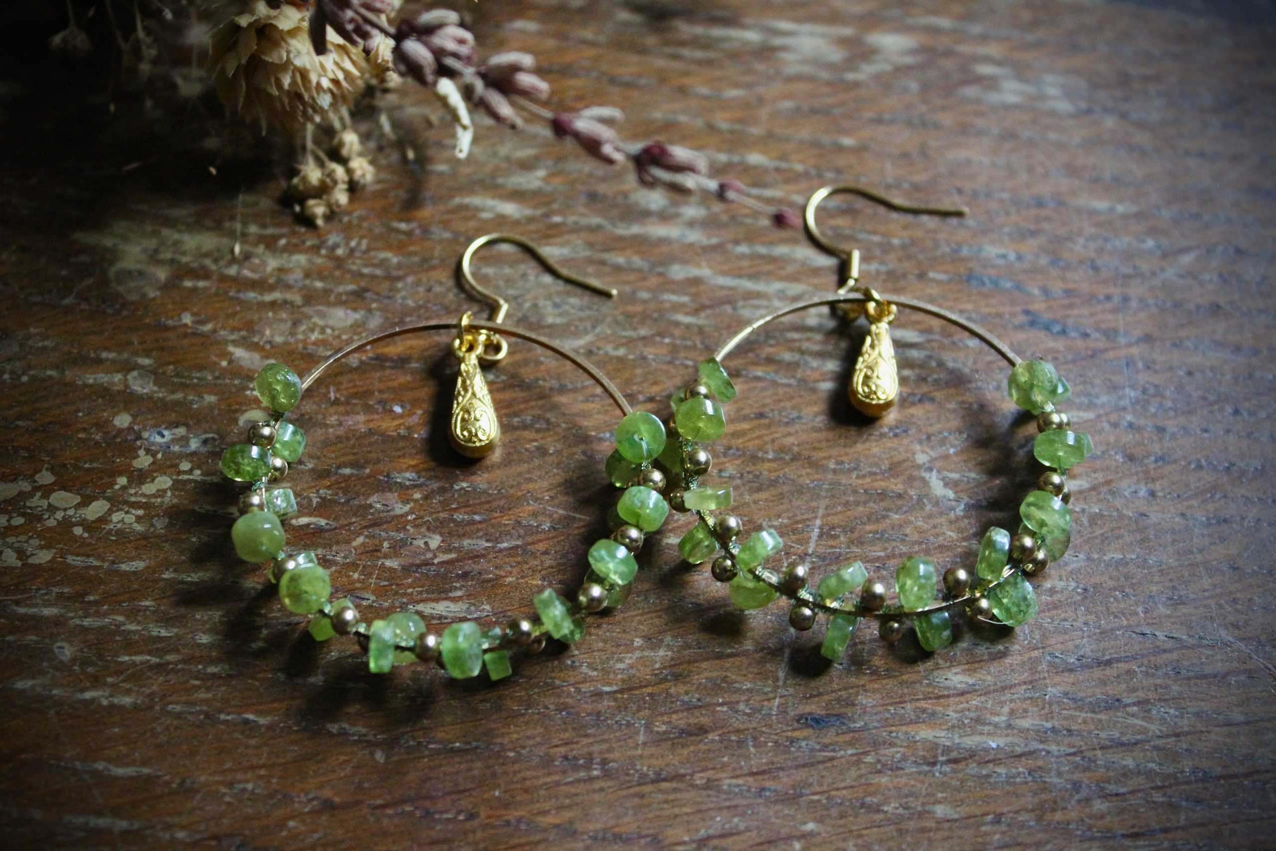 Des boucles d’oreilles fines et lumineux, ornées de véritables éclats de péridot ou de grenat, pour une touche naturelle et élégante au quotidien.